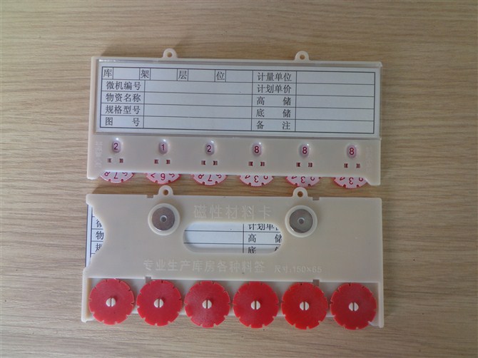 磁性標簽卡(磁性材料卡、材料卡、材料磁性卡、貨架標牌、磁性標牌、磁性標簽槽)適用于商場、文檔室、圖書館、倉庫等場所內(nèi),固定或吸附在文檔架、書架、貨架上標示該處物品信息的材料卡 磁性材料卡材質(zhì)ABS工程塑料,堅固耐用,背面裝有強磁材料或不粘膠,也可以使用開設在底扳上的掛壁式安裝孔固定,便于材料卡在不同材質(zhì)架上安裝。解決目前在工廠、商場等場所內(nèi)存儲大量物資所使用的該類倉儲卡信息不全或使用不便,而提供一種可隨時按需、靈活、方便更改材料數(shù)量,且結(jié)構(gòu)簡單、合理的材料卡,提高倉庫管理水平,以適應企業(yè)的認證、升級。經(jīng)上千家企事業(yè)單位、部隊使用,效果良好